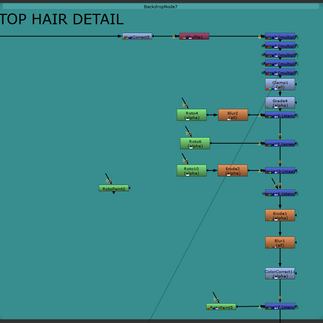 Unfortunately, the white values were clamped at 1.0 and Nuke had a hard time differentiating the highlights, which caused an intense flickering in the hair so I started roto painting it out and try to make it look smooth.